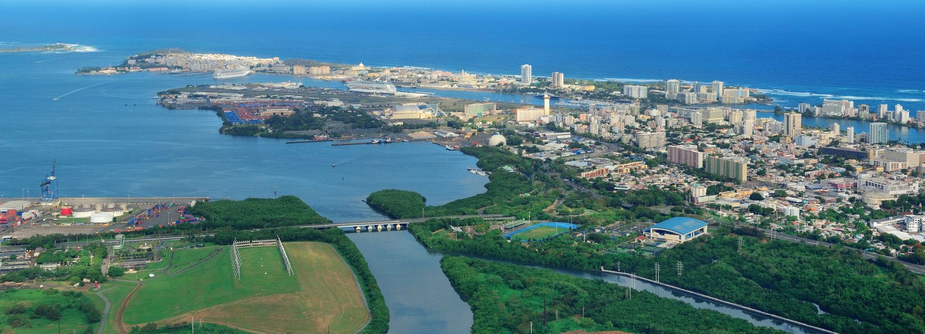 Two of the seven parks are located immediately outside Puerto Nuevo of the Port of San Juan, the largest maritime port in the Caribbean by TEU volume.